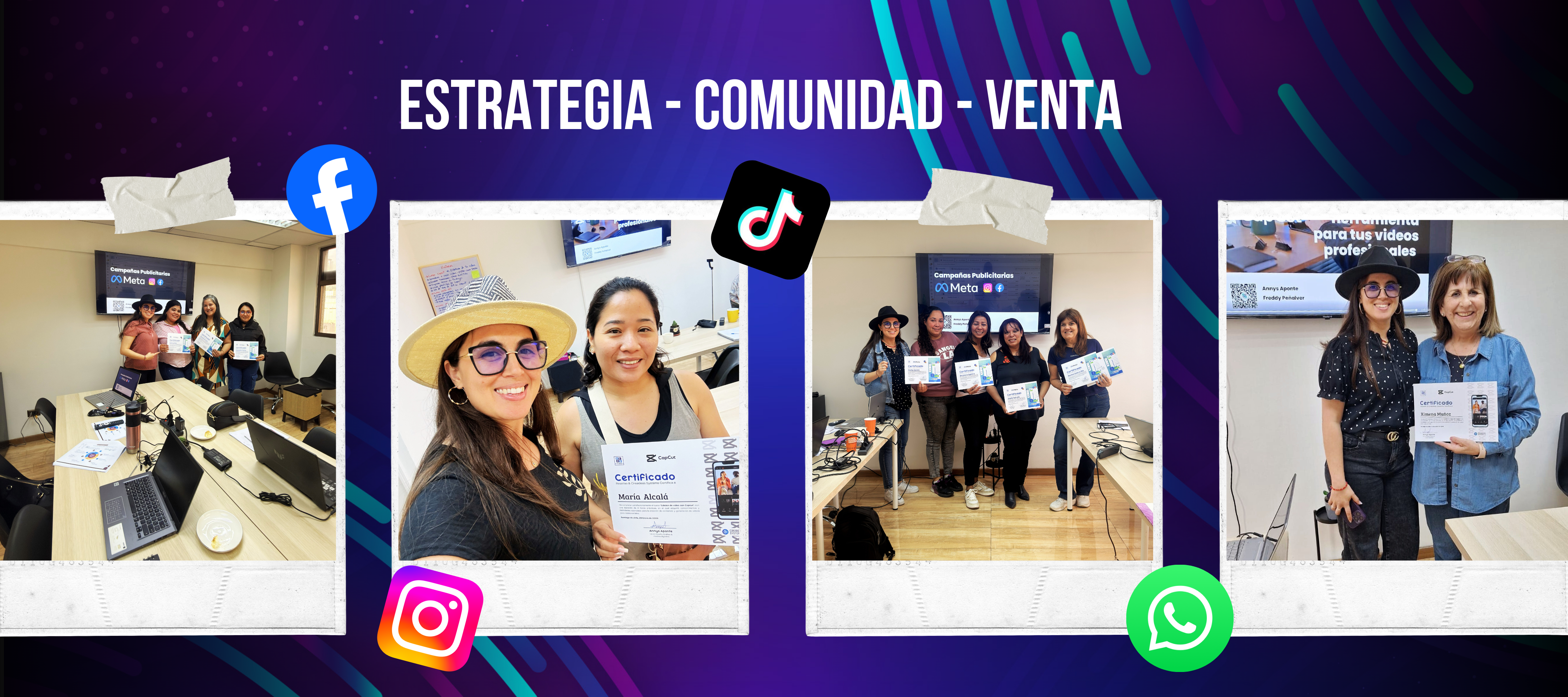 Aprende a crear contenido que conecta y campañas que venden, con formación práctica, acompañamiento y recursos listos para aplicar desde el día 1.